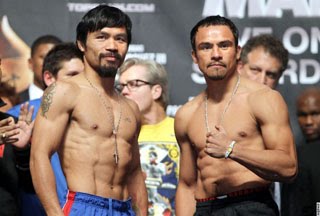 今回のパッキアオの体重は5月のモズリー戦より2ポンド軽く、マルケスのウェイトはメイウェザーと対戦した時と同様だった、パッキアオとマルケスはこれが3年ぶり3度目の対決となるライバル同士。過去はパッキアオの1勝1分。