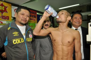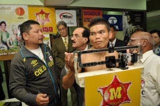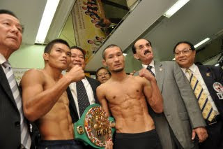 明日、タイ・バンコクの国立競技場ニミブット体育館で行われるWBC世界S・フライ級タイトルマッチの計量が行われ、チャンピオン、スリヤン・ソールンウィサイと挑戦者名城信男(六島)ともパスした。