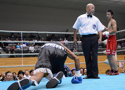 土浦出身の高橋は地元フアンの声援に出だしは硬さも目立ち、ケアウの積極攻撃に後退。しかしすぐ態勢を立て直し、初回終了前の連打で左フックをボディーに決めると、ケアウがあえなくダウン。これは終了ゴングに逃げられたが、続く2回にもやはりボディー攻めで2度のダウンを追加し、最後は10カウントで試合終了となった。