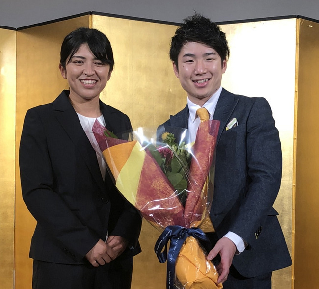 清水(左)と林田 第17回アジア大会は29日、準々決勝に出場したライト級の清水聡(ミキハウス)とフライ級の林田翔太(駒沢大)が勝利し、表彰台を確定させた。両階級の準決勝は10月2日に行われる。
