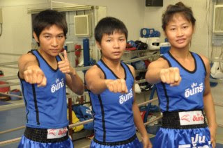 9月22日後楽園ホールで行われるトリプル女子世界戦の挑戦者、ゴーキアット軍団(タイ)の3人が19日午後、竹原&畑山ジムで練習を公開し会見を行った。