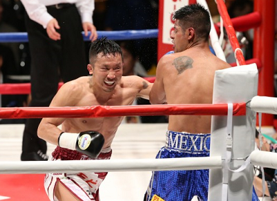 体格で勝るサルガドは大きなパンチをラフに振ってくる予想通りのボクシング。初回を落ち着いて対処した粟生が徐々にピッチを上げるかに思われたが、それほど甘い展開は待っていなかった。