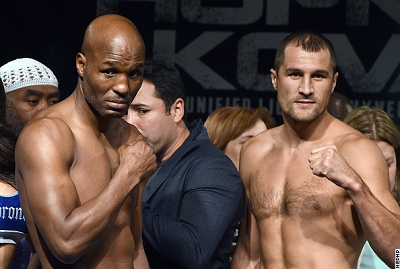 あす8日(日本時間9日)米アトランティックシティのボードウォーク・ホールでゴングとなる3団体統一L・ヘビー級タイトルマッチの計量が7日、現地で行われた。WBAスーパー&IBF同級王者のバーナード・ホプキンス(米)は173.5ポンド(78.69キロ)、WBO同級チャンピオンのセルゲイ・コバレフ(ロシア)は174.5ポンド(79.15キロ)でそれぞれリミットの175ポンド(79.38キロ)をパスした。