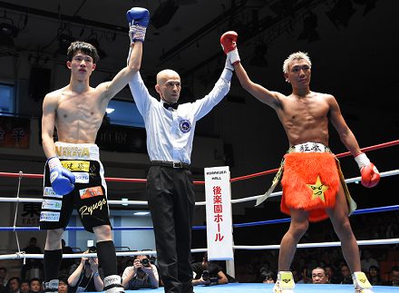 この日行われたもうひとつの8回戦は佐藤成吾(松田)が高田小次郎(六島)に3-0判定勝ちした。