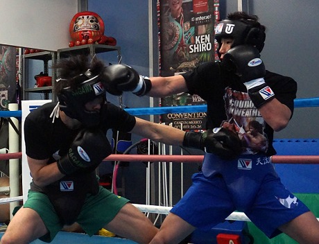 シャドー、ロープとしっかり動いた後に行われたスパーは、日本王者の村中優(フラッシュ赤羽)と5ラウンドこなした。ボディー打ちに加えてアッパーも巧打し、メディアをうならせたゴンサレス。これには「攻撃が始まると止まらない。受けに回ると止められませんね」と村中も舌を巻いていた。