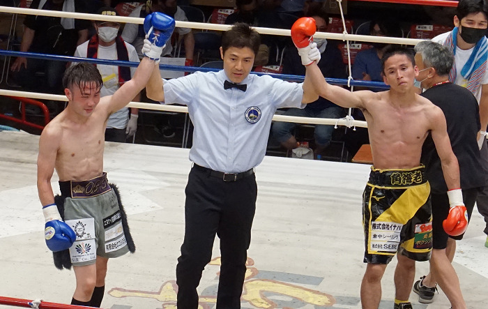 またセミでは日本S・バンタム級7位橋元隼人(ワールドスポーツ)が横枕敬治(フラッシュ赤羽)に8回3-0判定勝ち。互いに手数の少ない試合だったが、その中で橋元がクイックな右を当ててポイントを集めた。78-75、78-74、79-74のスコア。