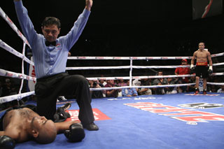 同じリングのWBA世界L・フライ級タイトルマッチは王者ローマン“チョコラティート”ゴンサレス(ニカラグア)が挑戦者オマール・サラド(メキシコ)に7回48秒TKO勝ちで2度目の防衛。初回2度倒したゴンサレスがコンスタントなアタックで断然優勢。右マブタをカットしたサラドにドクターチェックが入った後、7回王者の連打でサラドは3度目のダウン。続行に応じたが追撃を浴び、主審が割って入った。