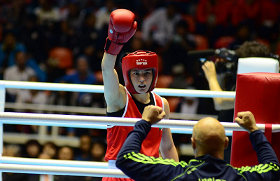 また同じくロンドン五輪金メダリストのケイティー・テイラー(アイルランド)はアゼルバイジャン選手に判定勝ちでライト級優勝。これで世界選手権5連覇の快挙を達成した。