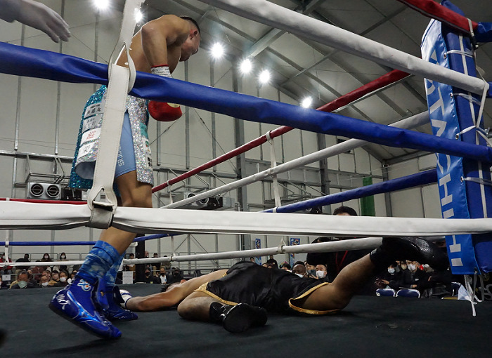寿以輝は非公開のテスト。2分30秒の2ラウンドのスパーリングで小山英哉(ワイルドビート)とグローブを交えた。20キロ減量して167センチ、59キロの寿以輝は今年7月に父が所属した大阪帝拳に入門、練習を始めている。パワーは十分あり、1ラウンド終わりには左フックで小山をロープに飛ばした。しかし、2ラウンドにはガードが甘くなり、打ち込まれ後退する場面も。