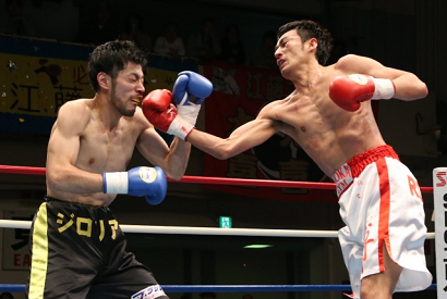ロバート山本 3回に入り、両者とも疲れが出たが、より失速したのは若い高橋だった。山本は右に加え、ボディブローも披露してこのラウンドを優勢に終える。すると4回は完全に山本のラウンド。一気に息を吹き返した山本は、大歓声の後押しを受けて高橋を攻めたて、右ストレートを決めところで主審が試合を止めた。