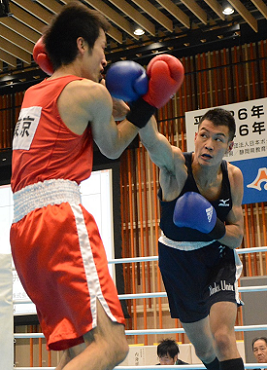 ライト級優勝の浅井(右) 第66回全日本社会人選手権大会は4日最終日を迎え、7階級で決勝戦が行われた結果、認定の2階級とあわせて9階級の社会人王者が誕生した。社会人の好成績を残したチームに授与される「柴田勝治杯」は、杉田大祐、千田武史の2人が優勝した東京がゲットした。来年国体を開催する和歌山県は佐武、井上、田尻の3人が優勝したものの、総合ポイントでは東京に及ばず2位にとどまっている。
