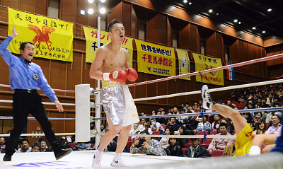 14日、神戸市の神戸芸術センターで開かれた千里馬神戸ジム主催の「ペガサススーパーファイト45」で、今年7月に世界初挑戦に失敗したIBF世界S・フライ級5位の帝里木下(千里馬神戸)がブックルック・ゴーナロンサービス(タイ)とバンタム級8回戦を行い、2回1分42秒KOで再起を飾った。セミの60キロ8回戦は、玉越強平から改名した日本S・フェザー級3位の松下拳斗(千里馬神戸)がタイ人選手に2回TKO勝ちした。