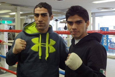 30日の「ボクシングフェス2014 SUPER BOXEO」(東京体育館)で八重樫東(大橋)とWBC世界L・フライ級王座決定戦を争う同級1位ペドロ・ゲバラ(メキシコ)と、WBC世界ライト級王座決定戦で1位ホルヘ・リナレス(帝拳)と対戦する2位ハビエル・プリエト(メキシコ)が25日、東京・神楽坂の帝拳ジムで練習を公開した。