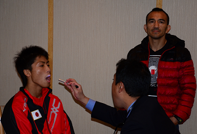 30日に東京体育館で挙行される「ボクシングフェス2014 SUPER BOXEO」のトリプル世界戦の予備検診が27日、都内のホテルグランドバレスで行われ、WBO世界S・フライ級王者オマール・ナルバエス(アルゼンチン)、挑戦者井上尚弥(大橋)が顔を合わせた。