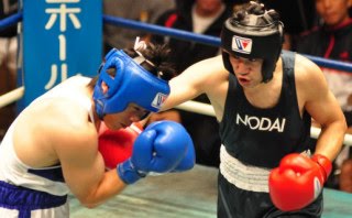 連覇を狙う東京農業大学は日本体育大学と対戦し、ライト級(2)を落としたのみの8-1。主将成松大介(ライト級1)、青木貞頼(バンタム級1)、吉野修一郎(ウェルター級)らのほか、伊藤走(Lフライ級)、中澤奨(バンタム級2)の新入生コンビも勝利した。