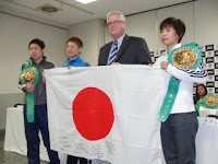 プロモーターの林隆治氏は「やっとここまで戻ってきた。地震でキャンセルとなったときは途方にくれたが、多くの励まし、援助でここまで来れました」とその想いと謝意を表した。選手も健闘を誓い、立会人とともに日の丸に復興へのメッセージを書き込んだ。