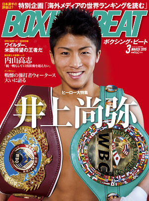 巻頭特集は新ヒーロー井上に迫りました。本人のインタビューはもちろん、ボクシング研究、S・フライ級のライバルたちにまで大展開。ナルバエス戦で証明された「怪物」のすごさを誌面であらためてご堪能ください。