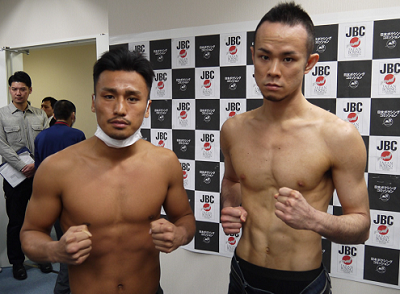あす7日東京・後楽園ホールの「第535回ダイナミックグローブ」の計量が6日、日本ボクシングコミッションで行われ、日本ダブルタイトルマッチに出場する4選手らが出席。日本S・ライト級王者の岡田博喜(角海老宝石)と、挑戦者1位の外園隼人(帝拳)はともにリミットの63.5キロでクリア。日本ウェルター級王者の高山樹延(角海老宝石)は66.6キロ、挑戦者1位の新藤寛之(宮田)は66.1キロでパスした。