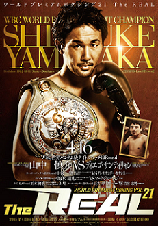 ■4月16日大阪・ボディメーカーコロシアムで開催される「ワールドプレミアムボクシング21~The REAL完全版」が4月19日14時からCS放送日テレG+で放送される。メインは山中慎介(帝拳)vsディエゴ・サンティリャン(亜)のWBC世界バンタム級タイトルマッチ。日本テレビ系列で全国放送される試合当日の放送時間は未定。またこの日デビューする辰吉寿以輝(大阪帝拳)の試合は、当日30分枠で読売テレビがノーカット放送(時間未定、関西ローカル)。