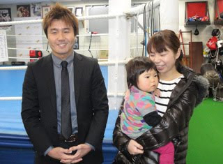今後については、金平会長は「将来協栄ジムを譲る選択肢もある」と示唆している。坂田さんも「すばらしいスポーツを後輩に伝えていきたいという気持ちはある」ものの、すぐの話ではなく、現在は何をするかまだ模索しているところ。それでも大学で勉強したいとこの春から専修大学の2部(夜間)に入学を決めている。近い将来に会社経営も視野に入れて、マーケティング等を学びたいということだ。引退式は3月14日、後楽園ホールで予定されている。 写真は引退発表後、夫人の志江(ゆきえ)さん、1歳になる長女・夕空(ゆら)ちゃんとカメラにおさまる坂田さん。会見を終えると、期せずして報道陣から拍手が起こった。