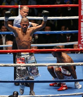 今年初めに1度は引退し、10月に再起したばかりのおなじみムニョス(31)。さすがにKOキングとして猛威を揮った頃と比べればパンチにスピードもなく衰えは隠せない。それでも若い亀田(24)を勢いづかせまいと立ち上がりから攻勢に出て、ワンツー、右ストレートと大きなブローを放ってプレッシャーをかけ続けた。これに対し亀田はサウスポーから右フック、左ストレートで対抗するが、手数が少ないのはムニョスのプレッシャーがきつかったため、あるいは相手のスタミナ難から後半失速するのを待つ作戦だったか。しかしムニョスも、大振りでミスも目立ったが意外に衰えず、クリンチ際にしつこく相手の後頭部をたたく反則は相変わらず。6回にはこのラビットパンチで減点1を取られた。