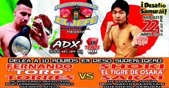 ■メキシコを拠点にリングに上がるライト級ボクサー、坂井祥紀が来週水曜日22日(日本時間23日)モンテレーに登場予定。メインのS・ライト級10回戦で相手は地元のフェルナンド“トロ”トーレス。ボックスレックによるとトーレスは16勝13KO10敗1分。坂井(17勝11KO5敗)は試合ポスターに“サムライの挑戦”、“大阪のトラ”と紹介されている。