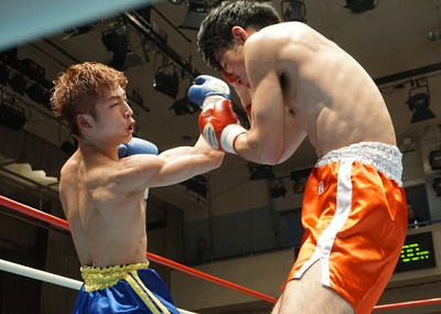 ウェルター級4回戦 三村利伸(マナベ)[TKO2回1分22秒]山岸卓人(福田)