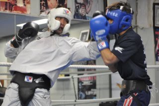 また福本雄基(三谷大和S)を迎えて日本S・フライ級王座の防衛戦に臨む佐藤洋太(協栄)も2ラウンドのスパーリング。ロープを背にしながらも鋭い左右のストレート、アッパーをカウンターするなど、テクニックを披露していた。こちらは「欲を出すとこけちゃうタイプなので」と前置きしつつも「日本タイトルを獲って欲が出てきた。世界の匂いがするような勝ち方をしたい」と宣言した。
