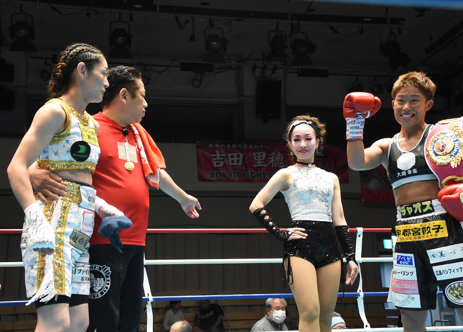 大柄な佐々木が勢いよく攻め込んだが、丸山は冷静にブロックで被弾を避けると右フックをリターン。2回早々にこのパンチで佐々木をぐらつかせると、主審が試合をストップした。丸山は「最強後楽園」で中森宏に敗れて以来の再起に成功。「もう一度ランキング選手とやって、勝って自信をつけたい」と話していた。12勝3KO4敗1分。