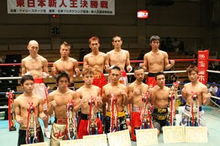※写真上は中澤を沈め7連続KO勝ちしMVPに輝いた土屋。下はこの日決まった12人の新人王たち