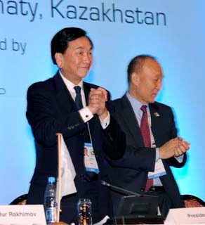 1日からカザフスタンのアルマトイで開催されているAIBA(国際アマチュアボクシング協会)の総会で、2日役員の改選が行われ、CK・ウー会長(台湾・64)が再選を果たした。会長選はウー氏以外に立候補者はなく、投票権を持つ106ヵ国のボクシング連盟がウー会長を信任して、2期目(任期4年)のウー政権が決まった。 写真は再選の決まったウー会長=PHOTO/AIBA=