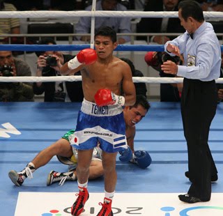 当初は正規王者レベコに挑戦の予定が、レベコが腎臓結石の緊急手術をしたためこの日の暫定王座決定戦に変更されたが、「レベコと統一戦をやれるなら、どこでもいい。でも、彼は病気というけど、本当は私と対戦したくないのだと思う」と、挑発的なコメントを残した。写真は2回、ロサスを3たびキャンバスに沈めKO勝ちで王座を獲得したゴンサレス