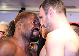 ハンブルグ市内の有名スポーツ店で開催された計量には多数のファンが詰め掛ける盛況ぶり(一説には3千人強!)。フェイスオフで両者は闘志を燃やした。2度目の戴冠後、コンスタントにリングに上がるクリチコ(39歳)は今回が5度目の防衛戦。対するブリッグス(38歳)は現状で最後に君臨したアメリカ人世界ヘビー級王者。3連続1ラウンドKO勝ち中の挑戦者は「クリチコを30秒で沈める」と息巻いていた。