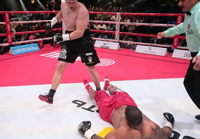 アイルランド在住のキューバ人ペレスはヘビー級では軟投型のサウスポー。しかし、ここのところスペクタクルなKO勝ちを続けるポベトキンはガードの甘さを見逃さなかった。右で大きくグラつかせ、またも右をアゴヘ痛打。背中からダイブしたペレスは起き上がるが、意識もうろう。ロシア人の追撃で前のめりに崩れストップがコールされた。