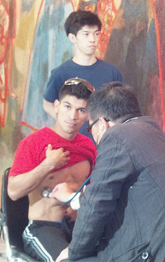 検診を受けるイェドラスと田中 愛知・パークアリーナ小牧で30日ゴングとなるWBO世界ミニマム級王座決定戦の予備検診が27日、試合の模様を生中継する名古屋市内のCBC(中部日本放送)で行われ、日本最短記録となるプロ5戦目での世界奪取を狙う同級2位の田中恒成(畑中)と同1位フリアン・イェドラス(メキシコ)が出席した。検診の主な結果は以下の通り。