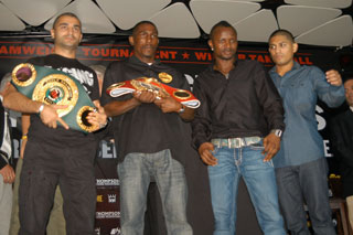 30日(現地時間)ロサンゼルスで開催されたプレセンテーションに出席したのは4選手。IBF世界バンタム級王者ジョニー・ペレス(コロンビア)、前同級王者ジョセフ・アグベコ(ガーナ)、S・フライ級統一王者ビック・ダルチニアン(豪州)、ペレスと引き分けた王者候補アブネル・マレス(メキシコ)の面々。共同プロモーターの一人、ゲイリー・ショウ氏によると、2冠王者フェルナンド・モンティエル(メキシコ)と“フラッシュ”ノニト・ドネア(比国)へも参加を依頼。“スーパー6”の実現を企画したが、この2人には断られたという。