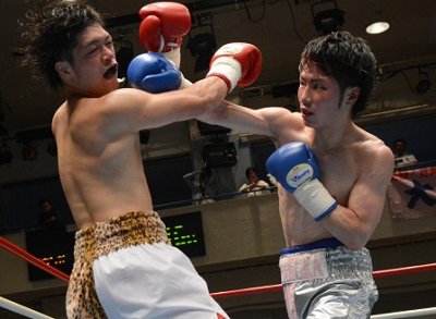 スタートから積極的に仕掛けた2013年全日本フライ級新人王の大保に対し、初回はサウスポー藤井の左カウンターが有効。しかし大保のプレスが強く、試合は2回から打撃戦に突入した。大保が右を打ち込んで好機を作れば、藤井が左をヒットさせて反撃に転じるなど、試合は一進一退。大保は5回に右ストレートで、7回にボディ攻撃で藤井の動きを一瞬止めたのが印象的だった。大保は7勝2kO2敗1分。藤井は7勝2KO4敗1分。
