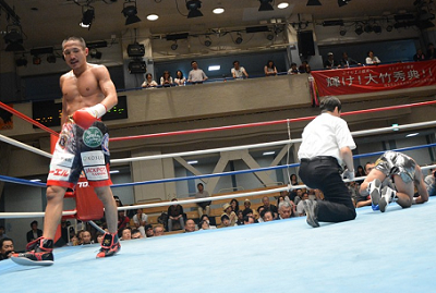 大竹は昨年11月、英リバプールでWBA同級正規王者スコット・クイッグ(英)に敗れてからの再起戦。手数を出してくる小柄なピサヌテープに対し、大竹はブロッキング冷静に対処するが、初回に鼻から出血。しかし地力の差は明らかで、2回にボディでダウンを奪うと、3回にボディブロー、右で2度のダウンを追加し、最後は連打でフィニッシュした。
