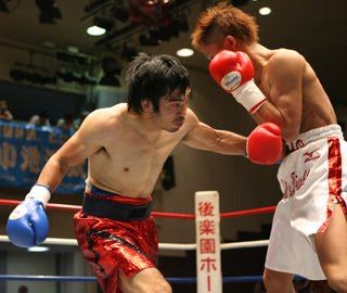 22日後楽園ホールの日本ウェルター級王座決定戦のセミでは前OPBFフライ級王者の大久保雅史(青木)が再起2戦目に臨み、格下の松名瀬元基(畑中)に8回3-0判定勝ちした。脚を使う松名瀬を大久保は右クロス、左フックなどでプレスし続けたがダウンは奪えなかった。もうひとつの8回戦は日本Sライト級ランカーの小池浩太(ワタナベ)がサウスポーの小竹雅元(三迫)に3-0判定勝ち。勘のいい小竹をファイター型の小池がしつこく攻めてポイントを集めた。 またこの日は元日本Sフライ級王者の名護明彦(全日本パブリック)が日本では3年ぶりのリングに立ち、笛木亮(ワールドスポーツ)に6回3-0判定勝ちした。接近戦で左右フックを相手のボディー目がけて繰り出し続けた名護。笛木も必死に応戦したが、ジャッジ全員が58-57で名護の勝利を支持した。2度世界挑戦歴もある名護は、昨年5月米国での6回戦でホセ・ベルトランに判定負けしたのが直近の試合だった。試合4日後には33歳の誕生日を迎える。=写真は笛木と打ち合う名護㊧=