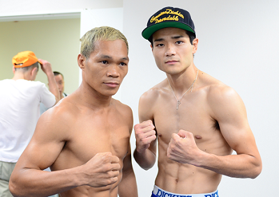 またセミのS・フェザー級8回戦に出場する日本同級8位江藤伸悟(白井・具志堅S)は200グラム・アンダーの58.7キロでパス。相手のOPBF同級3位エドガルド・ガベハン(比)は1度目の計量で500グラム・オーバーだったが、サウナスーツを着て走り込み、2度目でパスした。江藤は「相手は体が大きそう」とガベハンの印象を語った。この試合に勝ってOPBFタイトル挑戦を狙っている。