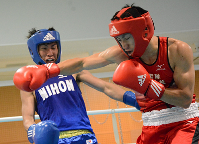 日本の主力7選手が来年のリオ五輪出場への第一関門を突破――。アマチュアボクシングの一般社団法人日本ボクシング連盟は19日、東京・北区の味の素ナショナルトレーニングセンターでアジア選手権大会の日本代表を決めるための選考会を開いた。 ライト級選考試合で木本盛宝を攻める成松