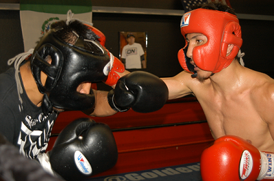 約1ヵ月間、ロサンゼルスでスパーリング中心の合宿を行っていた関西のハードパンチャー、仲村正男(渥美=日本S・フェザー級10位)が29日(日本時間30日)現地最後の練習を打ち上げ、あす日本へ帰国する。 精力的にスパーリングをする仲村(右)