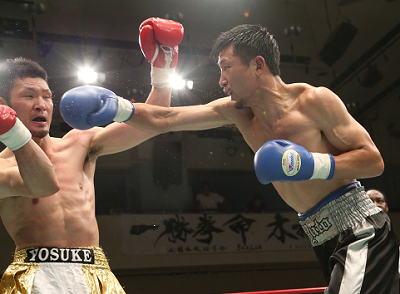 昨年の全日本新人王で日本L・フライ級15位のサウスポー大野はよく動き、よく手を出してリズムよくスタート。4連敗後2年のブランクからあけた元木は中盤に入ると打撃戦を仕掛け、これに大野が応じて試合は白熱。終盤は両者とも疲れが見えたが、最終回は再び打ち合って終了。大野は9勝4KO1敗。元木は6勝1KO8敗1分。