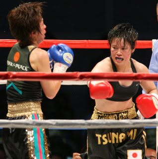 内山-グラナドス戦と同じさいたまスーパーアリーナのリングで行われたWBA女子世界S・フライ級タイトルマッチ10回戦は、チャンピオンの天海ツナミ(山木)が江畑佳代子(ワタナベ)相手に終始優勢裡に試合を運び、明白な3-0判定勝ちを飾った。昨年2月に手に入れたタイトルの2度目の防衛に成功。