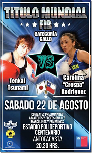 元WBA女子世界S・フライ級王者で現OPBF女子バンタム級王者の天海ツナミ(アルファ)が22日(日本時間23日)、チリのアントファガスタで地元のIBF女子世界バンタム級王者カロリナ・ロドリゲスに挑んだが、0-3判定負けで2階級制覇はならなかった。スコアは100-91、98-92、99-91。