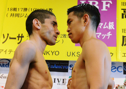 記者会見で、初防衛に臨む井岡は「戦いの準備は積んできた。タイトルを手放すことはない。チャンピオンとして熱い試合をして、KOで決めたい」と静かに戦闘モード。ソーサは「減量はクリアでき、心配なことはない。自信がなければ日本に来ていない」ときっぱり。計量後、2人はカメラマンの注文に応え、鼻を突き合わさんばかりににらみ合った。