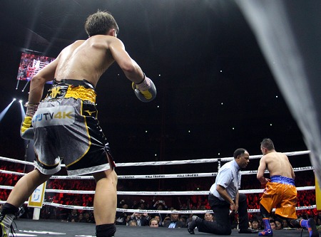 この日、スパーリングはなかったがシャドー、サンドバッグ、ミット打ちと15ラウンドのトレーニングをこなした黒木は「スパーリングを80ラウンドほどやってサウスポーにも慣れました。それが自信へとつながってきました」と好調を宣言。「チャンピオンはうまい選手。スキは相手が疲れないと出てこないと思う。打って動いて打ってと自分のボクシングができたらいい」と土浦の孫悟空らしく縦横無尽に動きまくるつもりだ。「この変則スタイルは、4回戦の頃内藤(大助)さんとスパーさせてもらって遊ばれたときにヒントを得たもの。こっちはパンチを当てられず、内藤さんのパンチはどこから出てくるのか分らなかった。こういうボクシングもいいなと……。それが仕上がってきてこういうスタイルになってきました」と黒木。「自信? なくはないです。世界獲って本物のベルトをみんなに見てもらいたい。まず土浦の市長さんに見ていただいて、市民栄誉賞をもらいたい」といつもの笑顔で答えた。練習後のウェイトは49.3キロと減量も順調。ターゲットのオーレードンはポンサクレックとともにいよいよ明日来日だ。