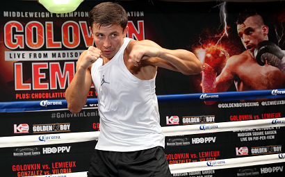 先週末、ロサンゼルスのワイルドカードジムで公開練習をしたゴロフキンは「(パンチャーの)レミューと戦うにあたり恐怖はないか?」というメディアの質問に「私は普通の男で生身の人間だから、怖さがないといえばウソになる。でも1%だけだ。100%ではない。私は100%ノックアウトする準備があるし、同じく判定勝ちする用意がある。短期決戦の用意もあるし、ストリートファイトの準備もできている。デビッドの出方次第だ。とにかくファンが望むファイトを披露する」と回答。自信をみなぎらせるとともに、終始スマイルを浮かべ余裕を感じさせた。