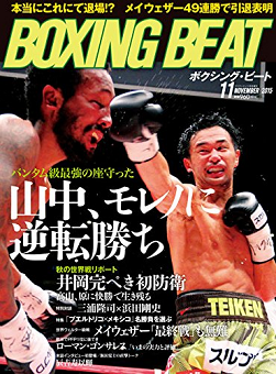 ボクシング・ビート最新11月号が15日、全国の書店にて発売となりました。表紙は山中慎介×アンセルモ・モレノのWBCバンタム級戦。山中の闘魂あらわな表情が目印です。