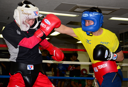 スパーはアマチュア・トップ選手の柏崎刀翔(自体校)、C級選手の新島聖人、堤アキラ(ともに帝拳)と行った。これまで12ラウンド通してのスパーリングは未体験だったが、まずは無難なデキ。「後半のラウンドは体の大きな相手(新島、堤)で圧力もあったので、体力的にいい練習ができたと思います」と木村は手ごたえを得た様子だった。